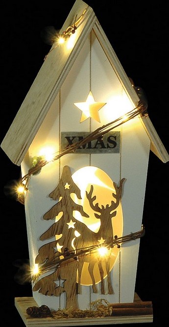 Ξύλινο Σπιτάκι Με Led Φωτισμό Μπαταρίας 37 x 10 x 19cm