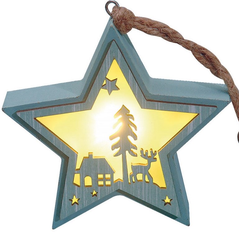 Ξύλινο Διακοσμητικό Αστέρι Με Led Φωτισμό Μπαταρίας ,12(H) x 12cm