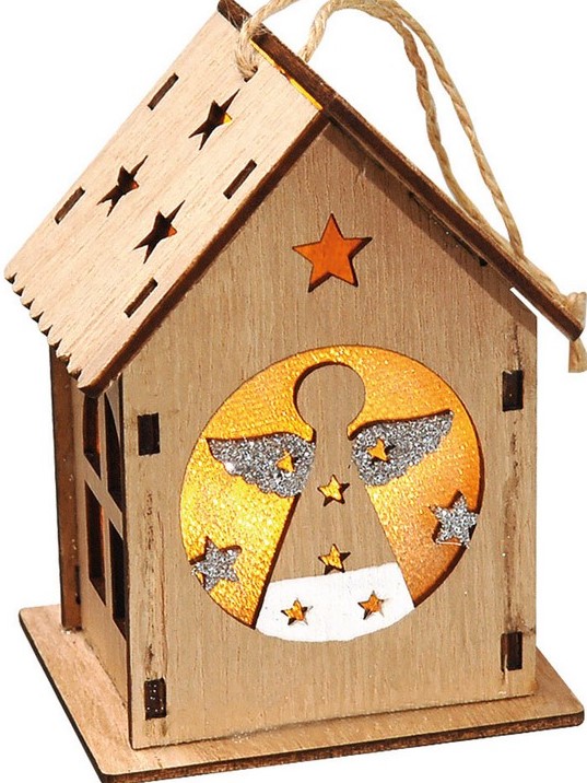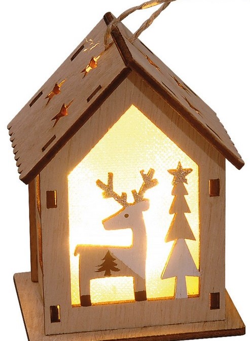Ξύλινο Διακοσμητικό Σπιτάκι Με Led Φωτισμό Μπαταρίας ,9(H) x 7 x 6cm