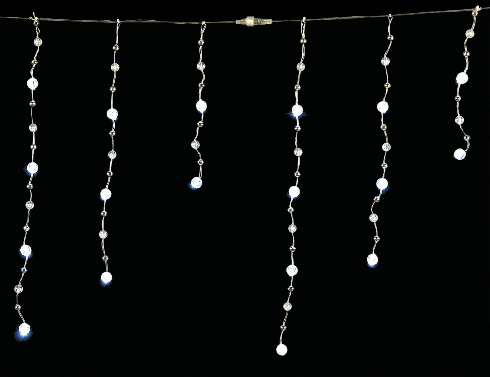 36% Συμμετρική Κουρτίνα 200Led Με 8 Προγράμματα, Διάφανο Καλώδιο, Λευκο( Του Πάγου) Λαμπάκι 500 X 40cm