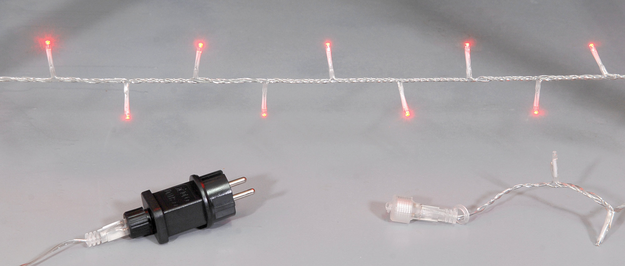 15% 100Led Λαμπάκια Με Επέκταση Και Πρόγραμμα Ip44 ,Διάφανο Καλώδιο/Κόκκινο Λαμπάκι ,5 Μέτρα