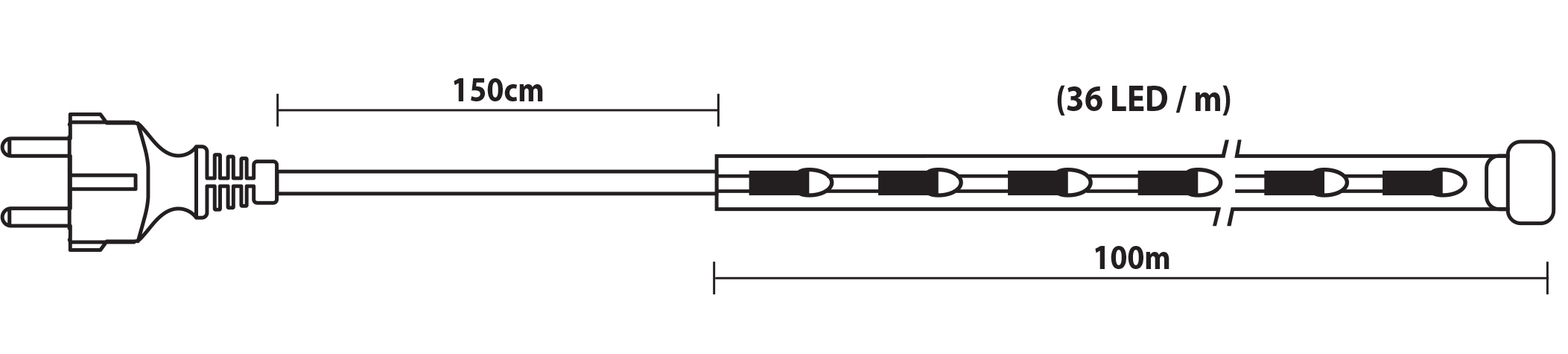 Χαρακτηριστικα: Μηκος: 100 Μετρα Με δυνατοτητα Κοπης Ανα 4 Μετρα Λαμπακια: 36 Led/Μετρο Τυπος: Ø12mm – 3w Καταναλωση: 3w Ip: 44 Προγραμμα: Οχι Χρωμα Φωτισμου: Θερμο