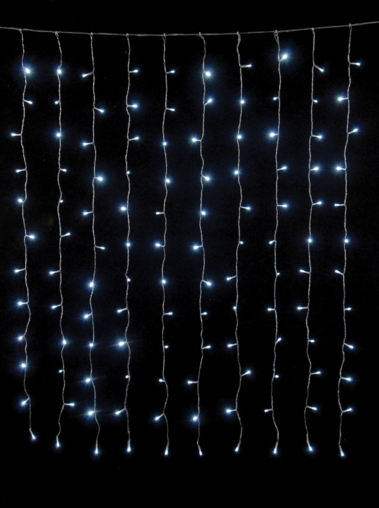 15% 240Led Συμμετρική Κουρτίνα Με Επέκταση Πρόγραμμα Και Μετασχηματιστή 200 x 100(h)cm,Διάφανο Καλώδιο/Λευκό Λαμπάκι
