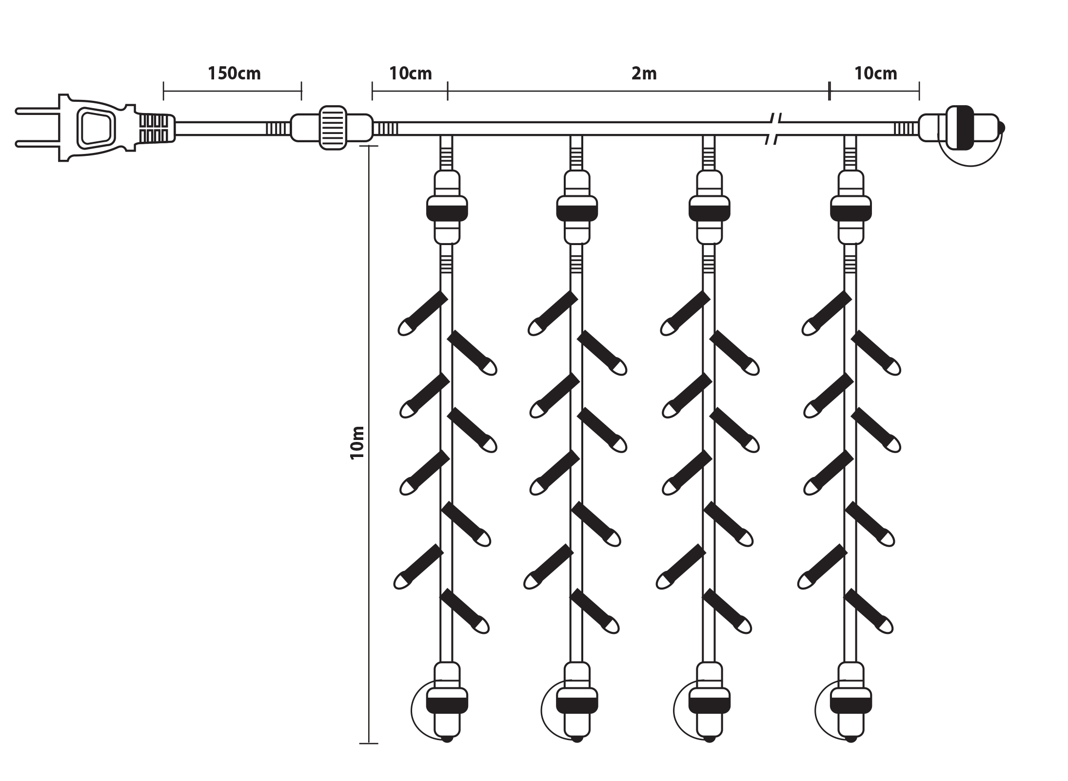 15% Led Συμμετρική Κουρτίνα Rubber Ip44,Με Επέκταση 2 x 10(h)cm,Διάφανο Καλώδιο/Θερμό Λαμπάκι