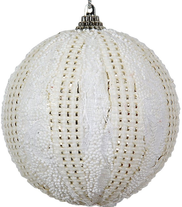 Λευκή Λούτρινη Χριστουγεννιάτικη Μπάλα 10cm